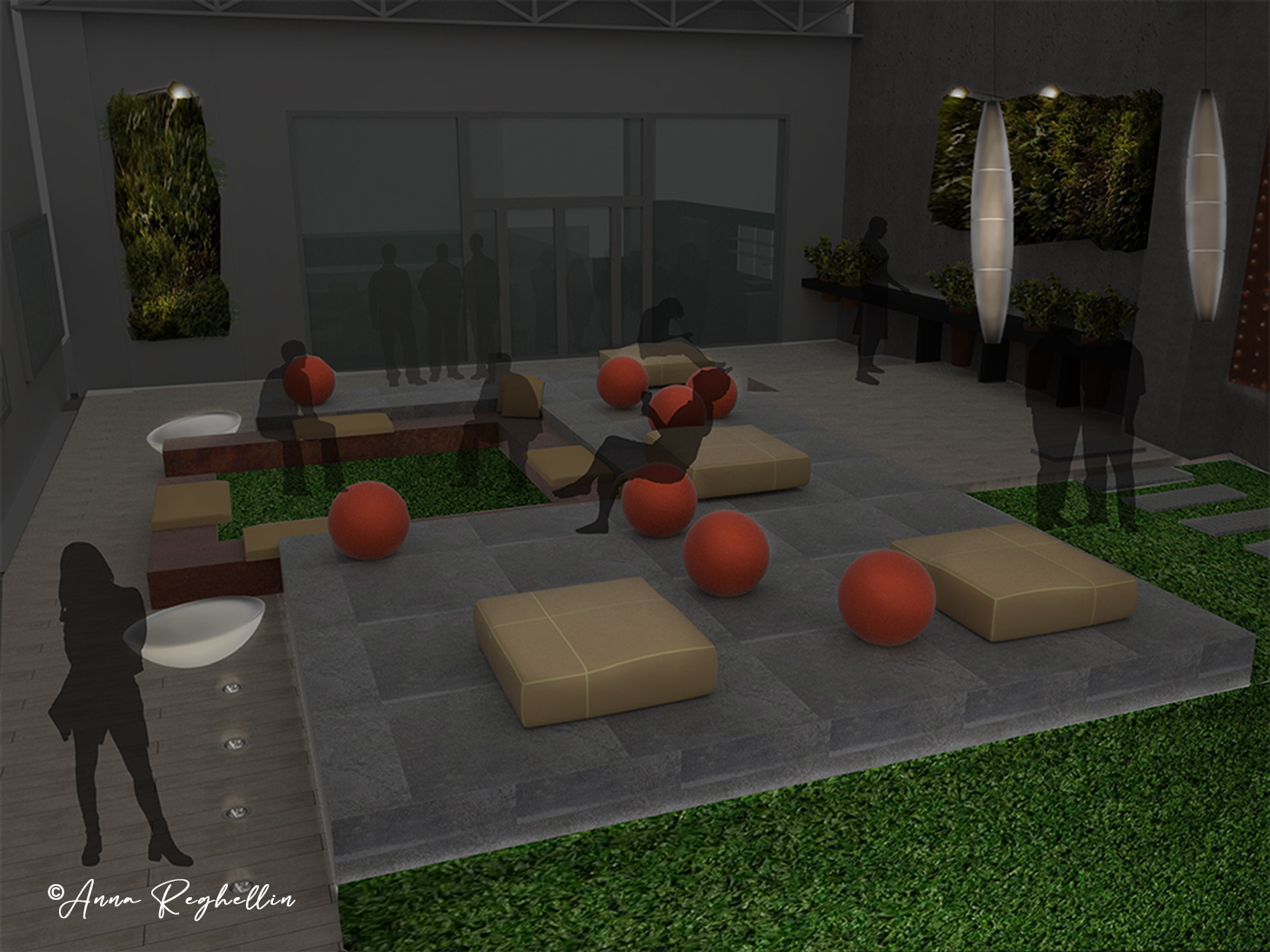 Il locale si sviluppa su due livelli: il piano terra comprende un ristorante, una caffetteria ed un servizio take away mentre il piano primo una zona wine bar dalla quale poter accedere all’outdoor, pensato come un salotto a cielo aperto con presenza parziale di verde pensile e un elemento di seduta comune. Il verde verticale svolge le funzioni di isolante termico e acustico, regalando un tocco di natura all’atmosfera urbana dello spazio.